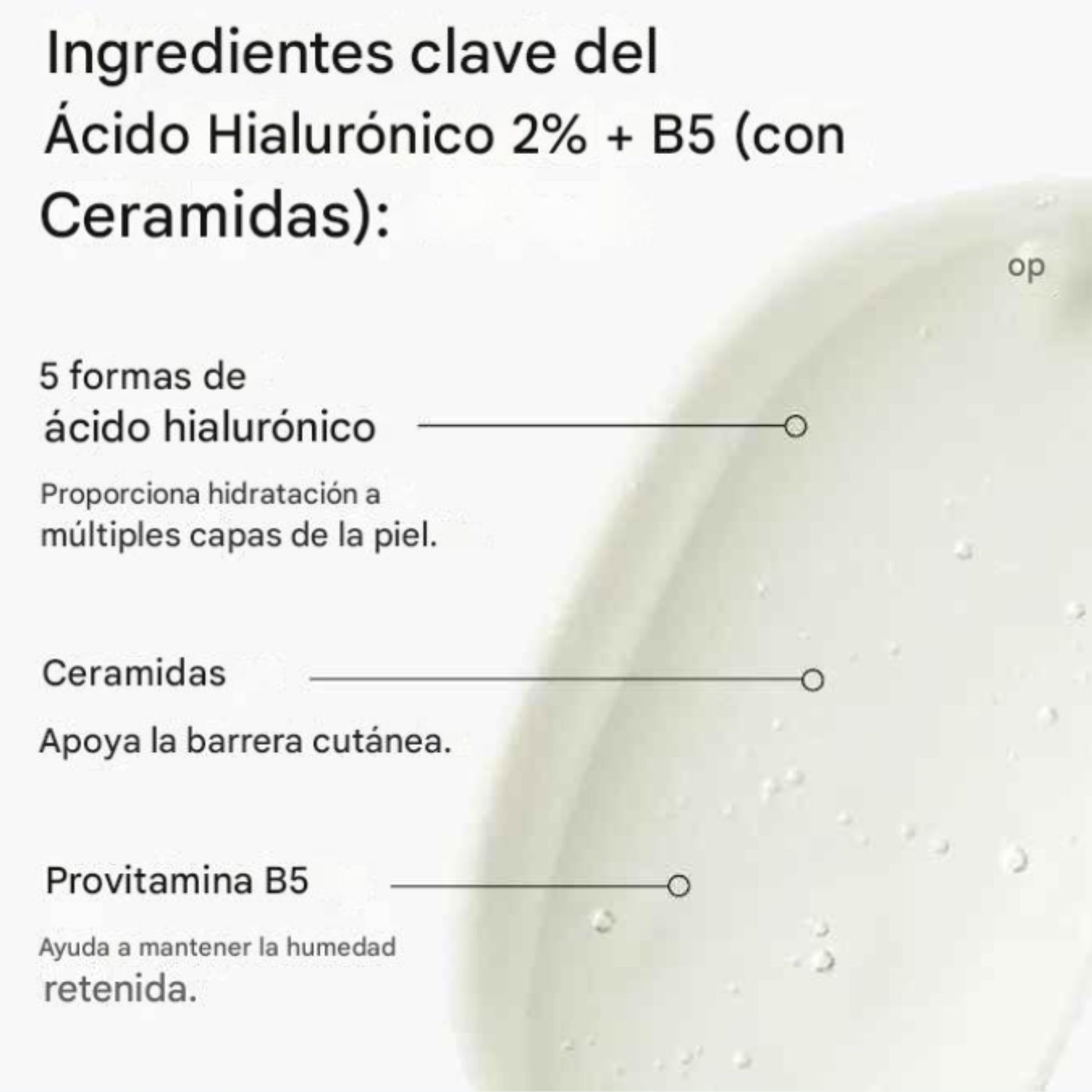 Suero de Ácido Hialurónico 2% + B5, perfecto para hidratar intensamente y mejorar la elasticidad de la piel.